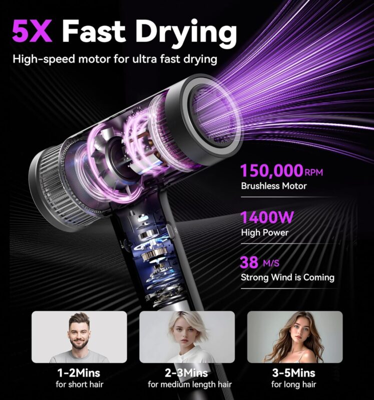 Hair Dryer, 150000 RPM High Speed Blow Dryer